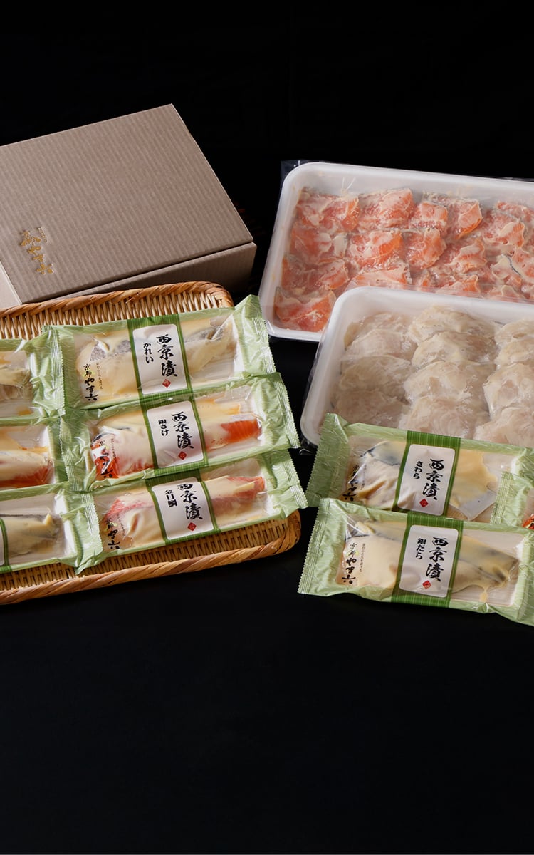 ご用途やご予算に応じてお選びいただける、幅広い価格帯の西京漬けをご用意しています。老舗ならではの信頼感と京都らしさが、さまざまな贈答シーンに穏やかに寄り添います。